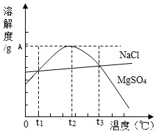 1℃时,NaCl和MgSO