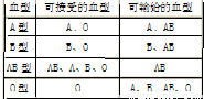 点评:解答此题的关键是熟练掌握各血型之间的输血关系,可结合上面表各中的内容来掌握.