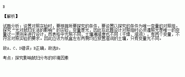 下表为某同学探究“光对鼠妇生活的影响”实验的初步设想,其中存在不合理之处,下列改进建议正确的是( )