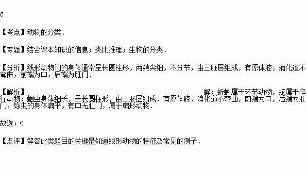 A、蚯蚓 B、蛔虫 C、沙蚕 D、蛇