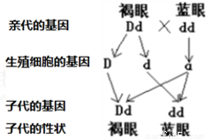 (3)如果显性基因用D表示,隐性基因用d表示,请写出第②组数据中褐眼子女的基因组成 ,如果他们与蓝眼人婚配,所生子女为蓝眼的概率为 。