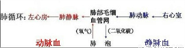 解答:解:在肺循环中,动脉血管(肺动脉)里流静脉血,静脉血管(肺静脉)里流动脉血.如图: