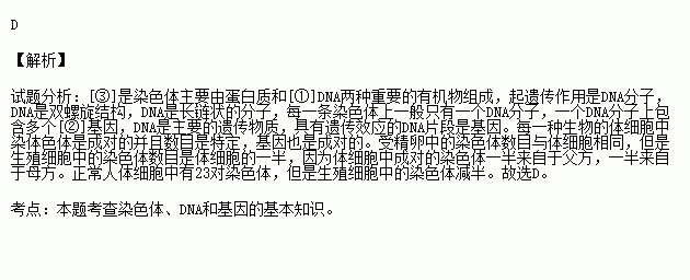 D.正常人体的所有细胞中,③的数量全部为23对