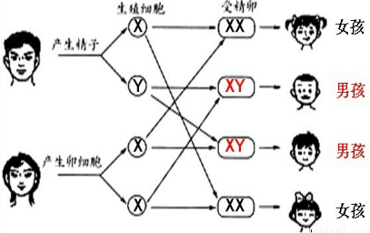 点评:男孩的性染色体是XY,女孩的性染色体是XX.