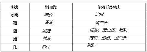 | Ïû»¯ÏÙ | Ëùº¬Ïû»¯Òº | Äܹ»Ïû»¯µÄÓªÑøÎïÖÊ |
