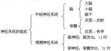 分析:神经系统由脑、脊髓和它们所发出的神经组成.脑和脊髓是神经系统的中枢部分,叫中枢神经系统;由脑发出的脑神经和由脊髓发出的脊神经是神经系统的周围部分,叫周围神经系统.脑位于颅腔内,包括大脑、小脑和脑干三部分,神经系统的结构和功能的基本单位是神经元.