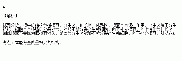 根尖的表面被称为“根冠”的结构保护着。随着根在土壤里不断伸长,根冠的外层细胞不断磨损,但根冠从不会因为磨损而消失,原因是( )