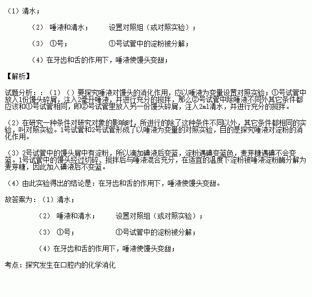 在①号试管中放入1份馒头碎屑,注入2毫升唾液,并进行充分的搅拌;