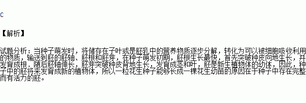 花生种子能够长成一棵花生幼苗,从种子的结构来说,主要是由于 ( )
