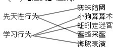 【解析】蜘蛛织网、蜜蜂采蜜是动物生来就有的由体内的遗传物质觉得的行为,所以是先天性行为,小狗算算术、蚯蚓走迷宫、海豚表演是在遗传因素的基础上,通过环境因素的作用,由生活经验和学习而获得的学习行为。