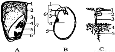 (2)B中营养主要贮存在[______]______中,C中3、1、5分别由B中______(填数字序号和相应结构名称)发育而成.