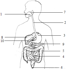 如图是消化系统的示意图.写出图中各序号所表示的结构名称