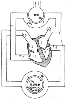 根据下面人体血液循环和气体交换示意图,回答下列问题: