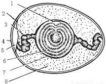 里面含有细胞核,该处色浓而略大,说明此卵是