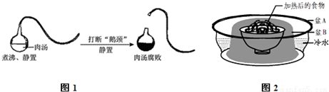 (3)根据“鹅颈瓶实验”的原理,夏天把饭菜煮沸、放凉后,暂时按图2的方法保存,短时间食物不会腐败变质.其中对食物加热的目的是