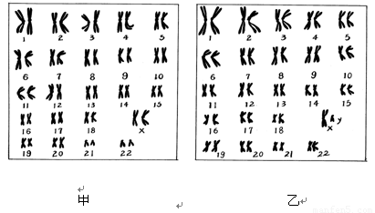 (2)根据图中细胞的染色体组成,可以判断,乙为 性别的人的体细胞染色体组成。