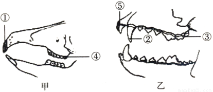 下图是兔和狼的牙齿分化示意图,据图回答: