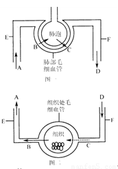 (2)图二是组织里的气体交换示意图,箭头D指 血的流动方向,C指