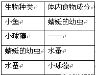 (4)该池塘受到了汞污染,表中体内汞含量最高的生物是 。