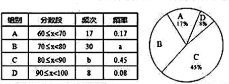 为了传承中华优秀的传统文化,市教育局决定开展“经典诵读进校园”活动,某校园团委组织八年级100名学生进行“经典诵读”选拔赛,赛后对全体参赛学生的成绩进行整理,得到下列不完整的统计图表:
