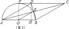 ②作DH⊥AB于点H,结合①可知四边形OHDF为矩形,即DH=OF=4,根据sin∠DAB=$\frac{DH}{AD}$=$\frac{1}{2}$知∠EOB=∠DAH=30°,即∠AOE=150°,根据弧长公式可得答案