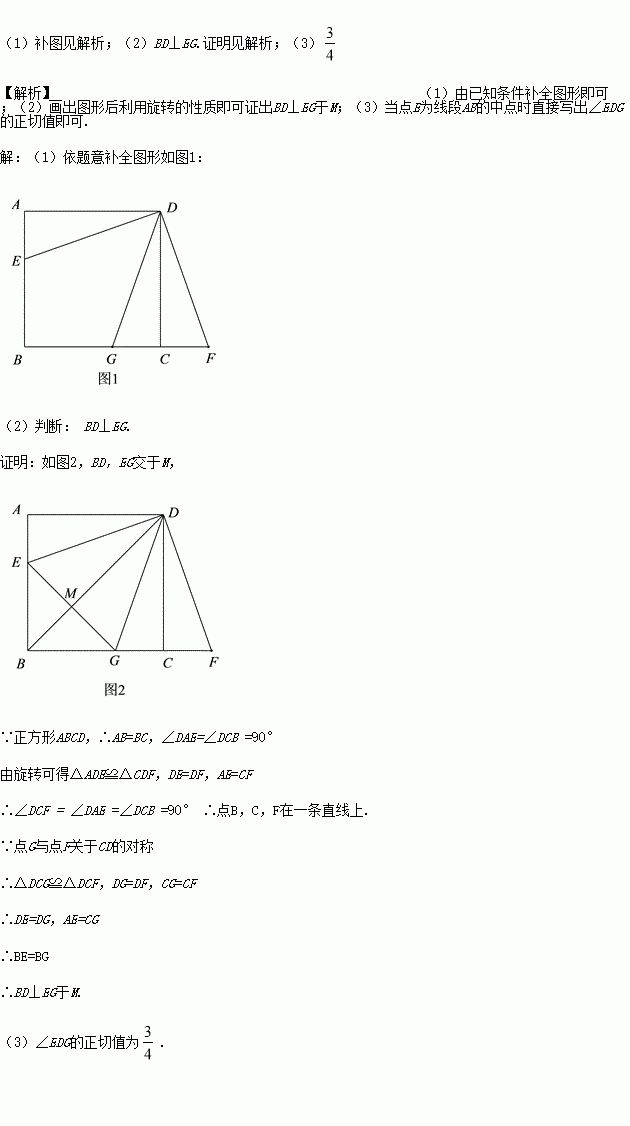 如图,在正方形ABCD中,E为AB边上一点,连接DE,将△ADE绕点D逆时针旋转90°得到△CDF,作点F关于CD的对称点,记为点G,连接DG.