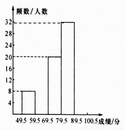 (3)若这组被抽查的学生成绩的中位数是80分,请直接写出被抽查的学生中得分为80分的至少有多少人?