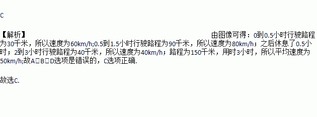 C. 汽车从0.5小时到1.5小时的速度是80千米/时; D. 汽车行驶的平均速度为60千米/时.