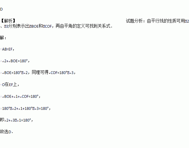 C. ∠1+∠2+∠3=90° D. ∠2+∠3﹣∠1=180°