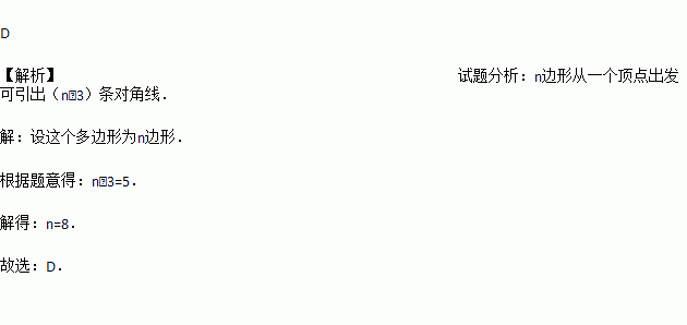 从一个多边形的某顶点出发,连接其余各顶点,把该多边形分成了5个三角形,则这个多边形是( )
