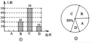 (2)扇形统计图中,“B”选项所对应扇形圆心角为 度;
