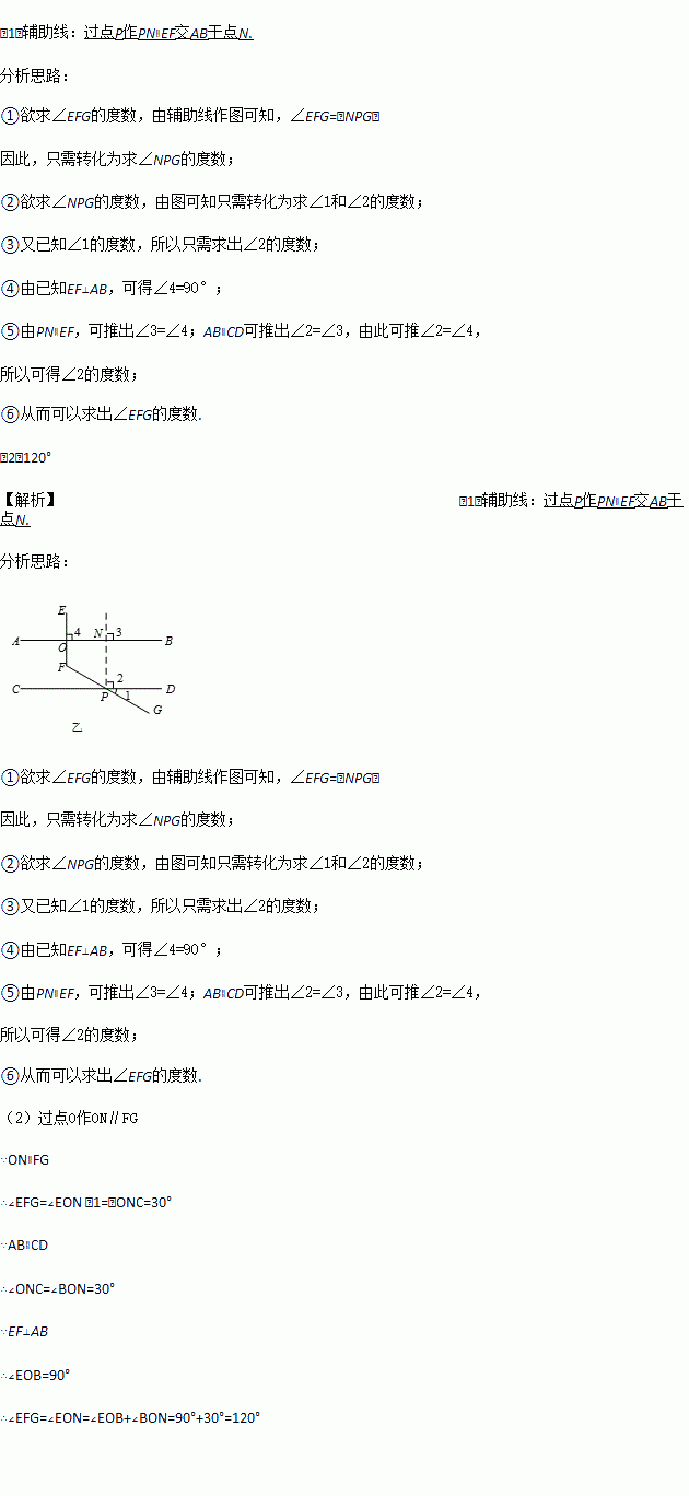 (2)请你根据丙同学所画的图形,求∠EFG的度数.
