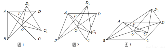 在四边形ABCD中,对角线AC、BD相交于点O,将△COD绕点O按逆时针方向旋转得到△C1OD1,旋转角为θ(0°<θ<90°),连接AC1、BD1,AC1与BD1交于点P.