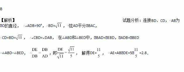 如图,AB为⊙O的直径,C为⊙O上一点,弦AD平分∠BAC,交BC于点 E,AB=6,AD=5,则AE的长为( )