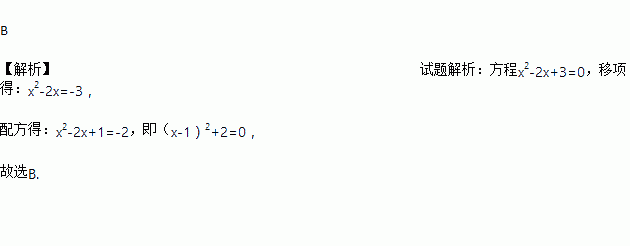 利用配方法将x2-2x+3=0化为a(x-h)2+k=0(a≠0)的形式为