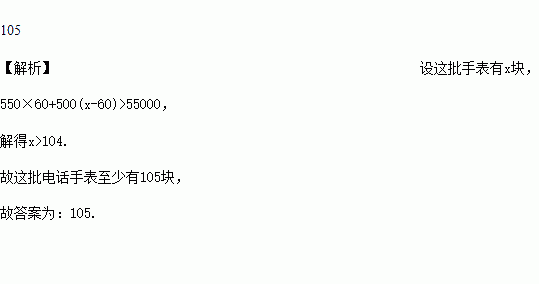 某经销商销售一批电话手表,第一个月以550元/块的价格售出60块,第二个月起降价,以500元/块的价格将这批电话手表全部售出,销售总额超过了5.5万元.这批电话手表至少有__________块.