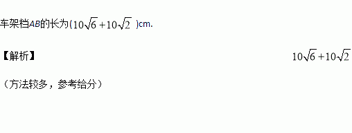 自4月以来,我市推出了一项“共享单车”的便民举措,为人们的城市生活出行带来了方便.图(1)所示的是某款单车的实物图.图(2)是这辆单车的部分几何示意图,其中车支架BC的长为20cm,且∠CBA=75°,∠CAB=30°.求车架档AB的长.