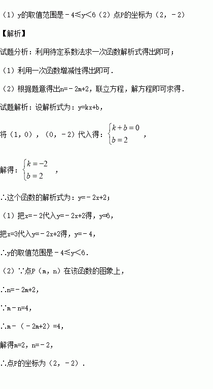 (2)已知点P(m,n)在该函数的图象上,且m﹣n=4,求点P的坐标.