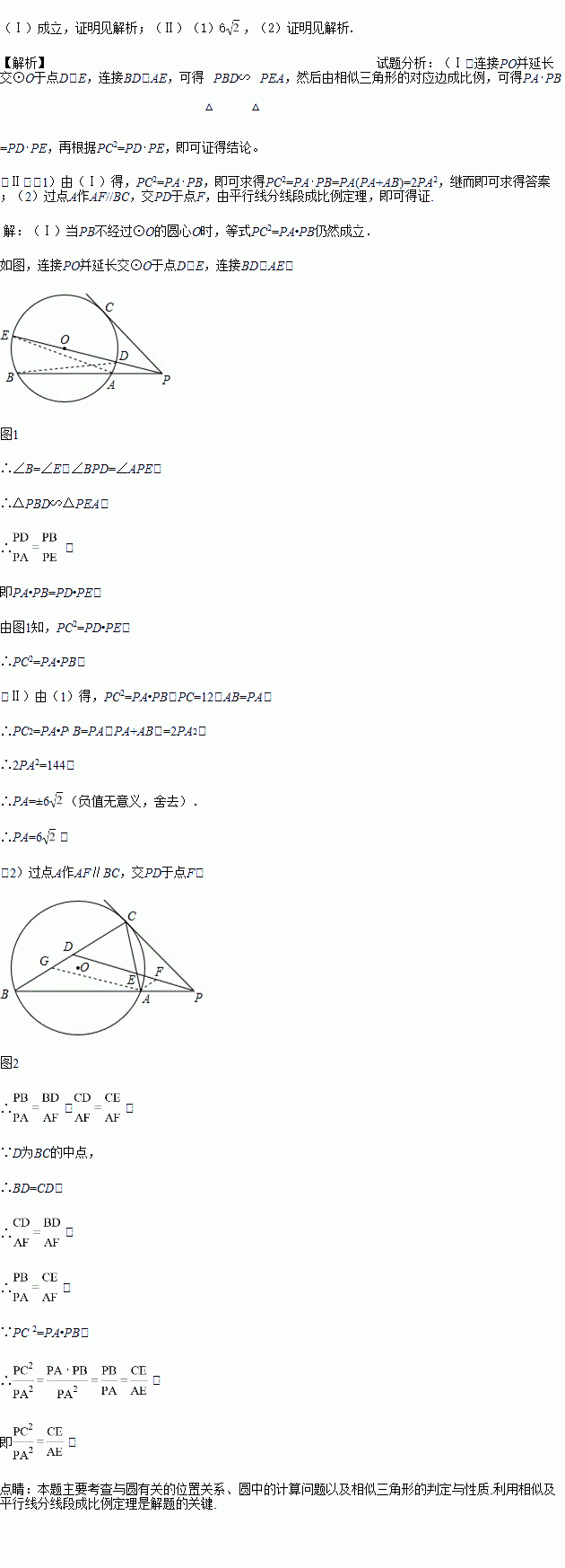 (Ⅰ)如果PB不经过⊙O的圆心O(如图2)等式PC2=PA•PB,还成立吗?请证明你的结论;