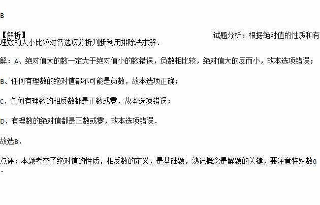 B. 任何有理数的绝对值都不可能是负数