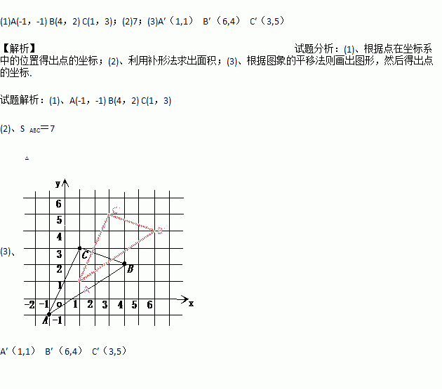 (3)若把△ABC向上平移2个单位,再向右平移2个单位得△A′B′C′,在图中画出△ABC变化位置,并写出A′、B′、C′的坐标.