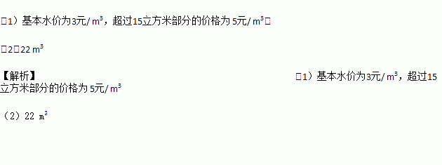 为了加强公民节水意识,合理利用水资源,某市采用价格调控手段达到节约用水的目的,规定:每户居民每月用水不超过15m3时,按基本价格收费;超过15m3时,不超过的部分仍按基本价格收费,超过的部分要加价收费,该市某户居民今年4、5月份的用水量和水费如下表所示: