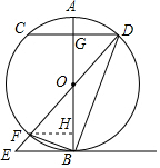 (2)易证得△ODG∽△OEB,然后由相似三角形的对应边成比例,求得OG的长,由勾股定理即可求得DG的长,作FH⊥AB于点H.则CD∥FH,在直角△BHF中利用勾股定理即可求得BF的长.