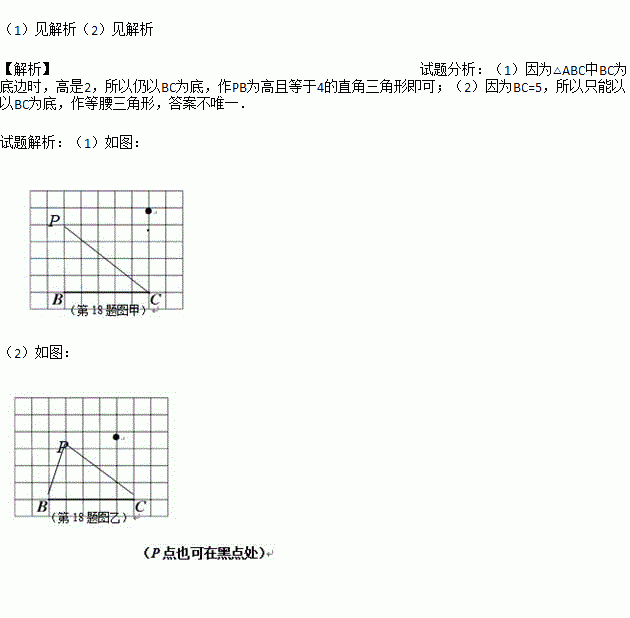 (本题8分)如图是由边长都是1的小正方形组成的网格.请以图中线段BC为边,作△PBC,使P在格点上,并满足: