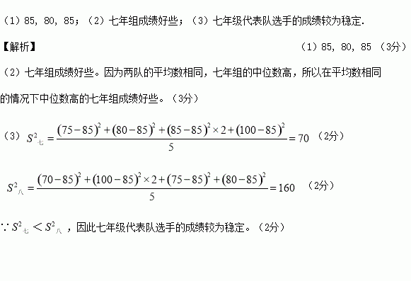 (2)结合两队成绩的平均数和中位数,分析哪个队的决赛成绩好;