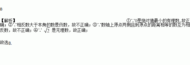 ①0是绝对值最小的有理数;②相反数大于本身的数是非负数;③数轴上原点两侧的数互为相反数;④