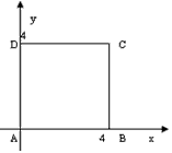 解:以AB所在的直线为x轴,AD所在的直线为y轴,并以点A为坐标原点,建立平面直角坐标系如图所示,则点A、B、C、D的坐标分别是(0,0)、(4,0)、(4,4)、(0,4)。