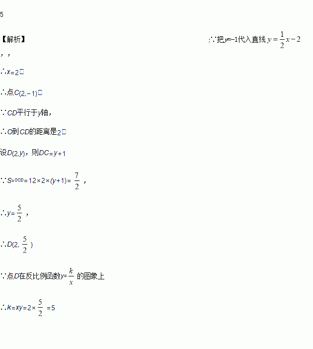 与x轴、y 轴分别交于点A 和点B ,点C在直线AB上,且点C 的纵坐标为一1 ,点D 在反比例函数y=