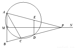 (本题14分)如图,已知线段AB=2,MN⊥AB于点M,且AM=BM,P是射线MN上一动点,E,D分别是PA,PB的中点,过点A,M,D的圆与BP的另一交点C(点C在线段BD上),连结AC,DE.