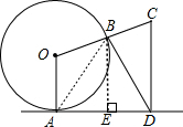分析 过点B作BE⊥AD于点D,连接AB,利用BC=OB、CD⊥AD及AD为⊙O切线可证得△BAD为等腰三角形,此时可利用∠BAD=∠BDA找到∠C与∠O的关系,从而可以求出∠C的度数.